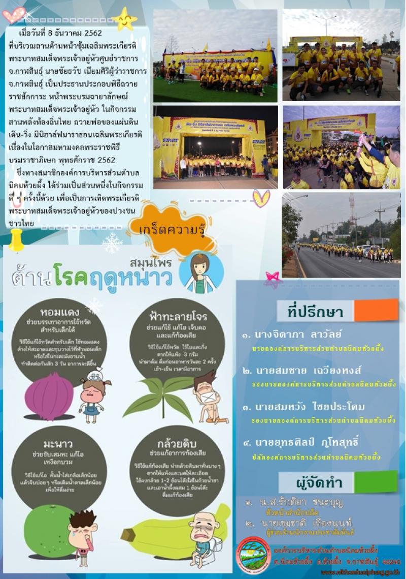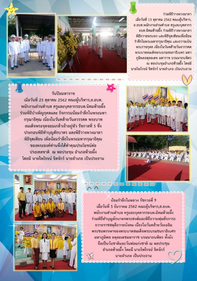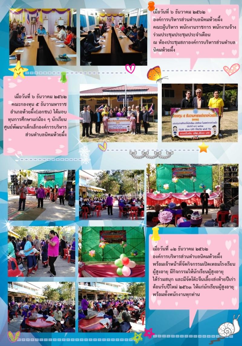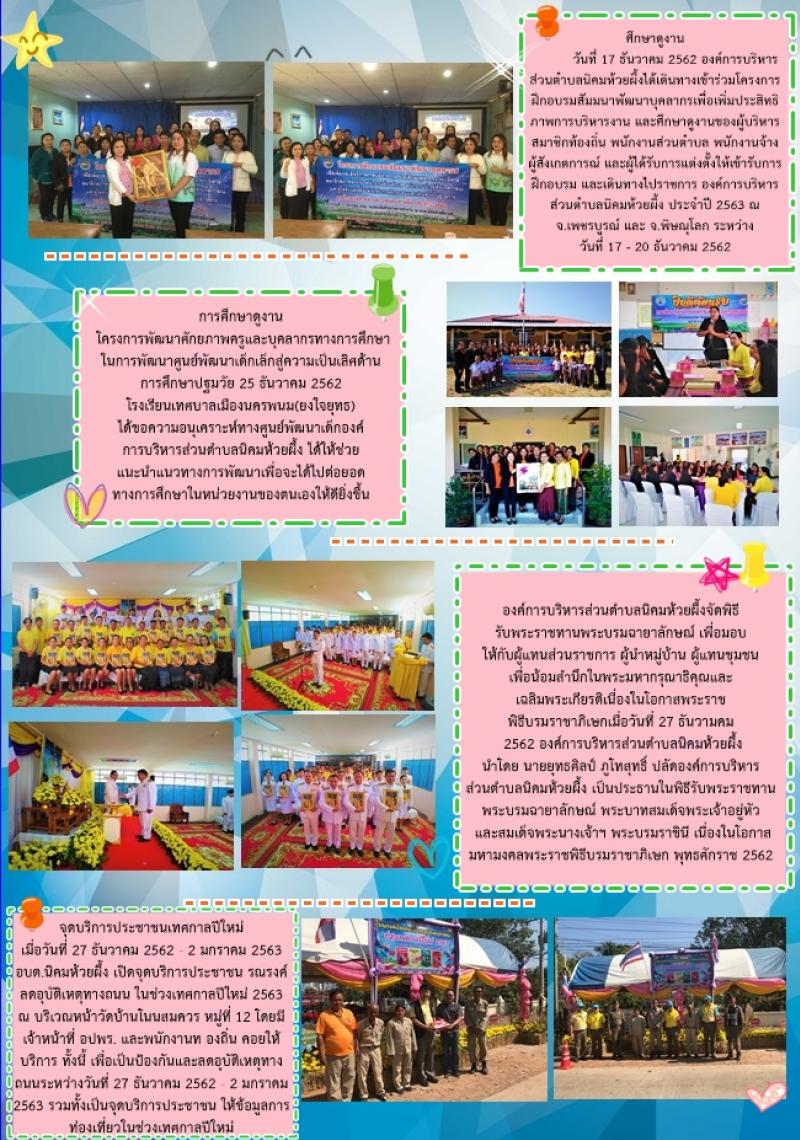 จดหมายข่าว องค์การบริหารส่วนตำบลนิคมห้วยผึ้ง ฉบับที่ 1 ประจำเดือน ตุลาคม - ธันวาคม 2562 (5 ภาพ)