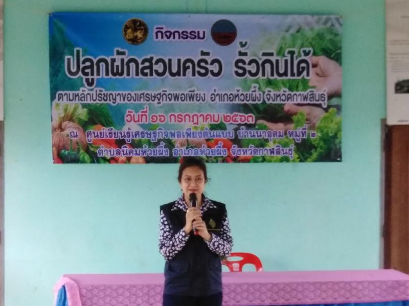 รายละเอียด : กิจกรรม ปลูกผักสวนครัว รั้วกินได้ ตามหลักปรัชญาของเศรษฐกิจพอเพียง อำเภอห้วยผึ้ง จังหวัดกาฬสินธุ์ วันที่ 16 กรกฏาคม 2563 ณ ศูนย์เรียนรู้เศรษฐกิจพอเพียงต้นแบบ บ้านนาอุดม หมู่ที่ 2 ตำบลนิคมห้วยผึ้ง อำเภอห้วยผึ้ง จังหวัดกาฬสินธุ์