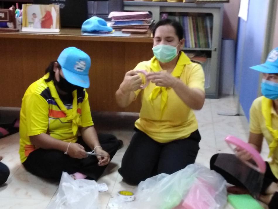 องค์การบริหารส่วนตำบลนิคมห้วยผึ้ง ร่วมกันจัดกิจกรรม ทำหน้ากากเฟซชิลด์ เพื่อนำไปแจกพ่อแม่พี่น้องในเขตตำบลนิคมห้วยผึ้ง (6 ภาพ) [30 กรกฎาคม 2563]
