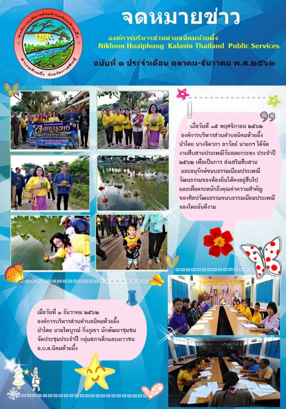จดหมายข่าว องค์การบริหารส่วนตำบลนิคมห้วยผึ้ง ฉบับที่ 1 ประจำเดือน ตุลาคม - ธันวาคม 2562 (5 ภาพ) [29 ธันวาคม 2562]