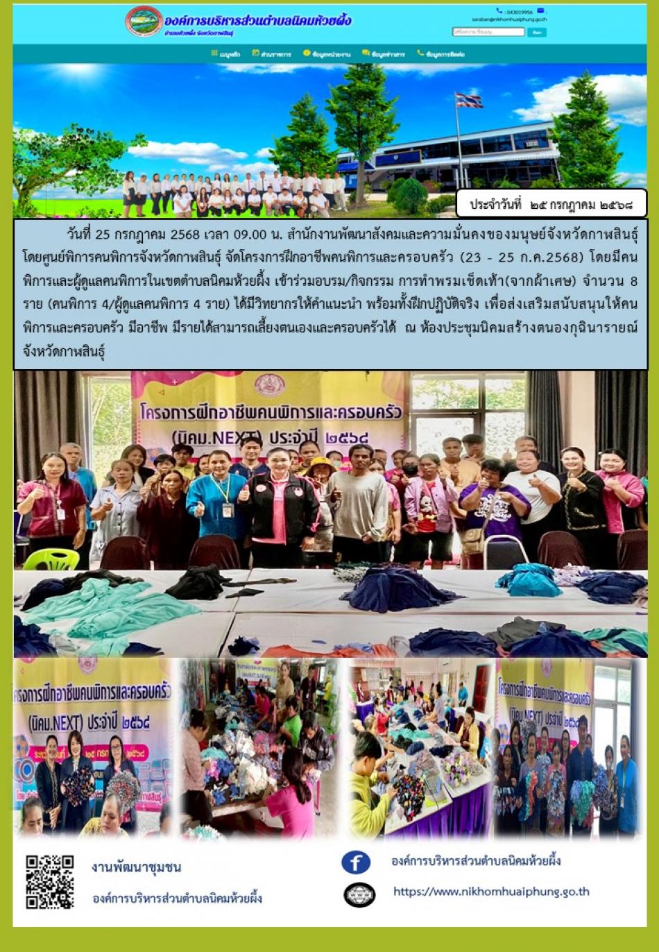โครงการฝึกอาชีพคนพิการและครอบครัว (วันที่23 กรกฎาคม - 25 กรกฎาคม 2568) [25 กรกฎาคม 2568]