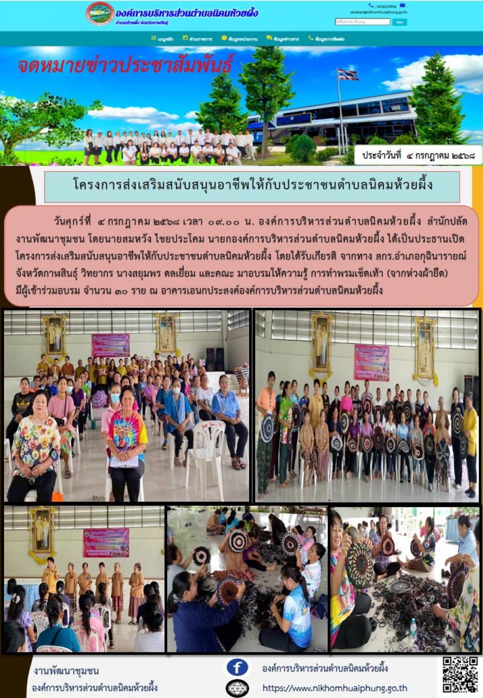 โครงการส่งเสริมสนับสนุนอาชีพให้กับประชาชนตำบลนิคมห้วยผึ้ง [14 กรกฎาคม 2568]