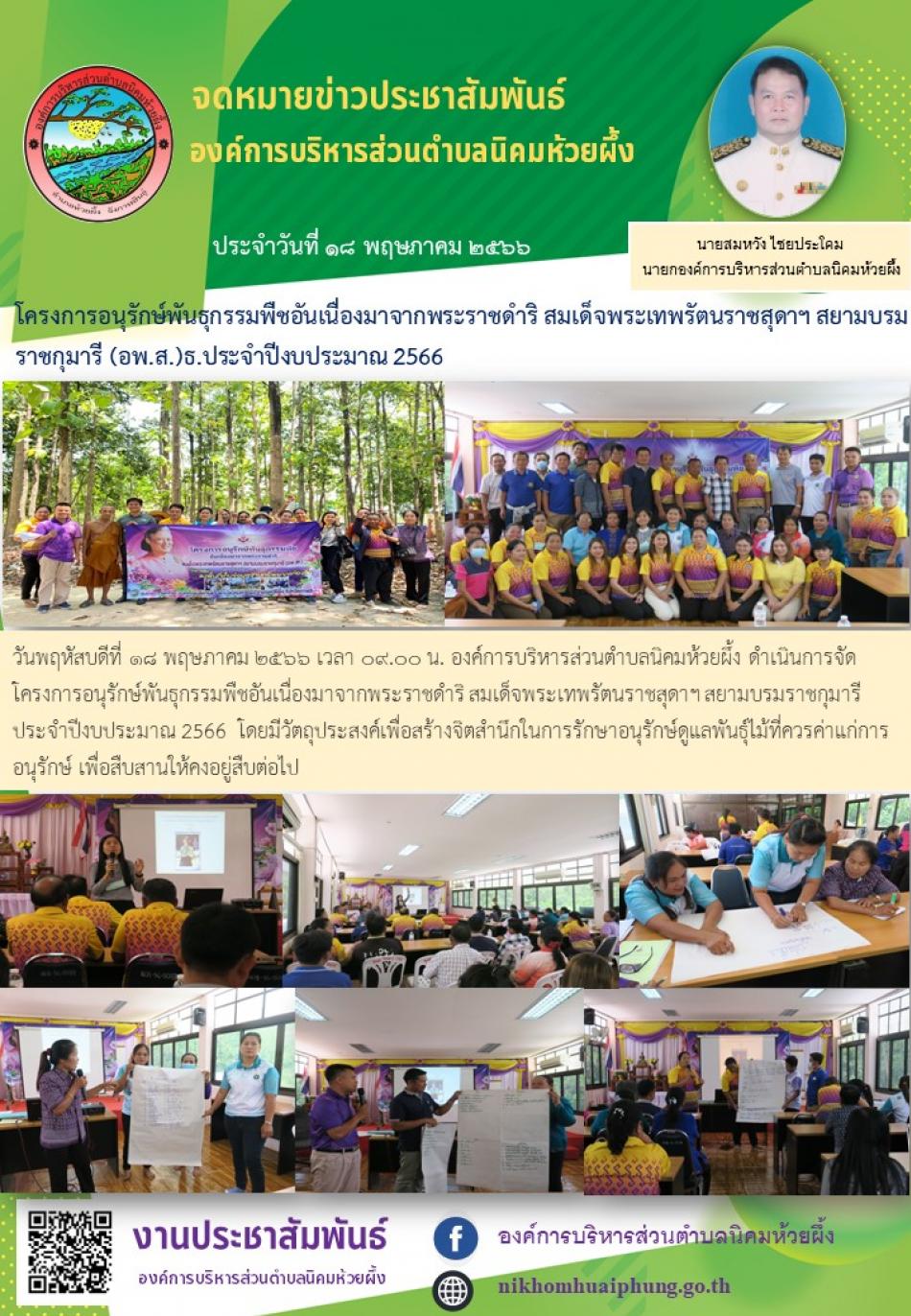โครงการอนุรักษ์พันธุกรรมพืชอันเนื่องมาจากพระราชดำริ สมเด็จพระเทพรัตนราชสุดาฯ สยามบรมราชกุมารี ประจำปีงบประมาณ 2566 [18 พฤษภาคม 2566]