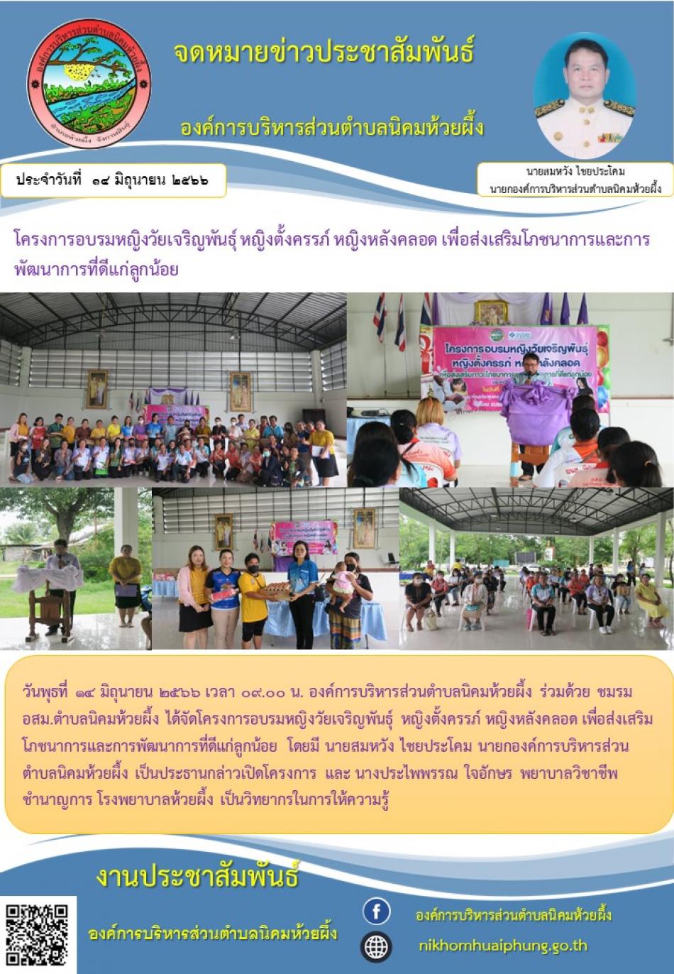 โครงการอบรมหญิงวัยเจริญพันธุ์ หญิงตั้งครรภ์ หญิงหลังคลอด เพื่อส่งเสริมโภชนาการและการพัฒนาการที่ดีแก่ลูกน้อย [14 มิถุนายน 2566]
