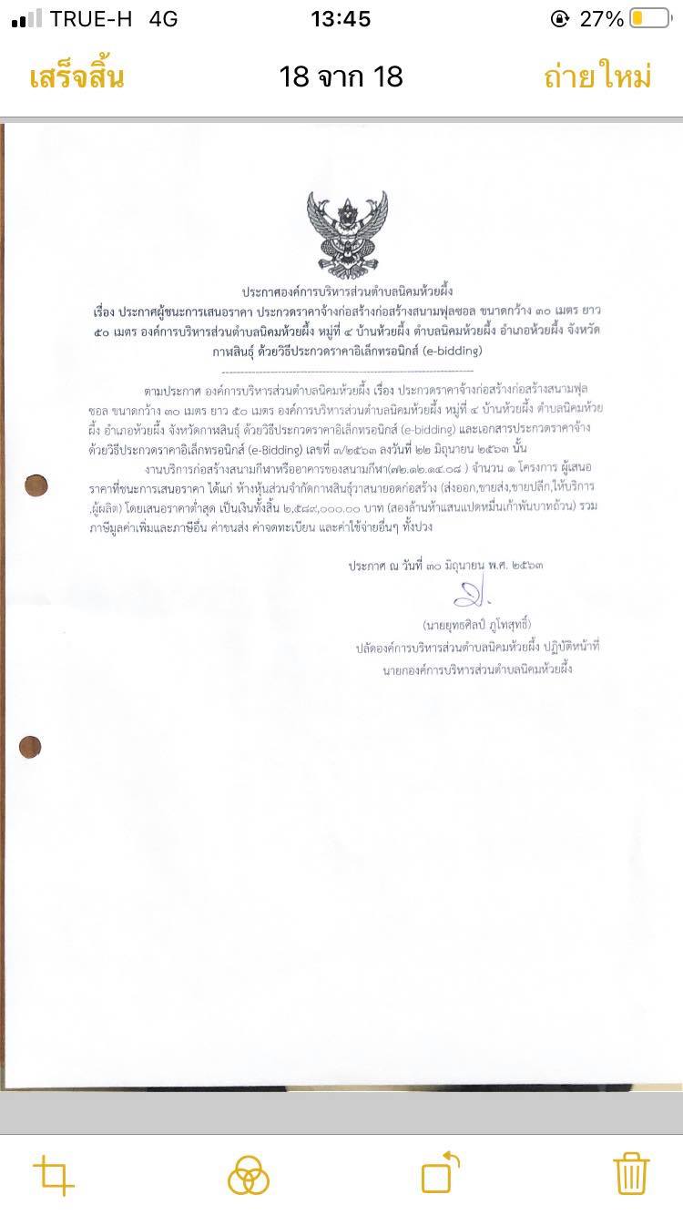 ประกาศผู้ชนะการเสนอราคา สนามฟุตซอล ม.๔