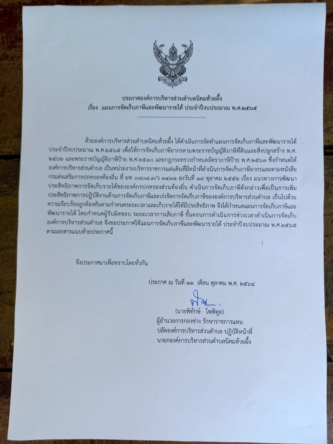 แผนการจัดเก็บภาษีและพัฒนารายได้ ประจำปีงบประมาณ พ.ศ. 2565