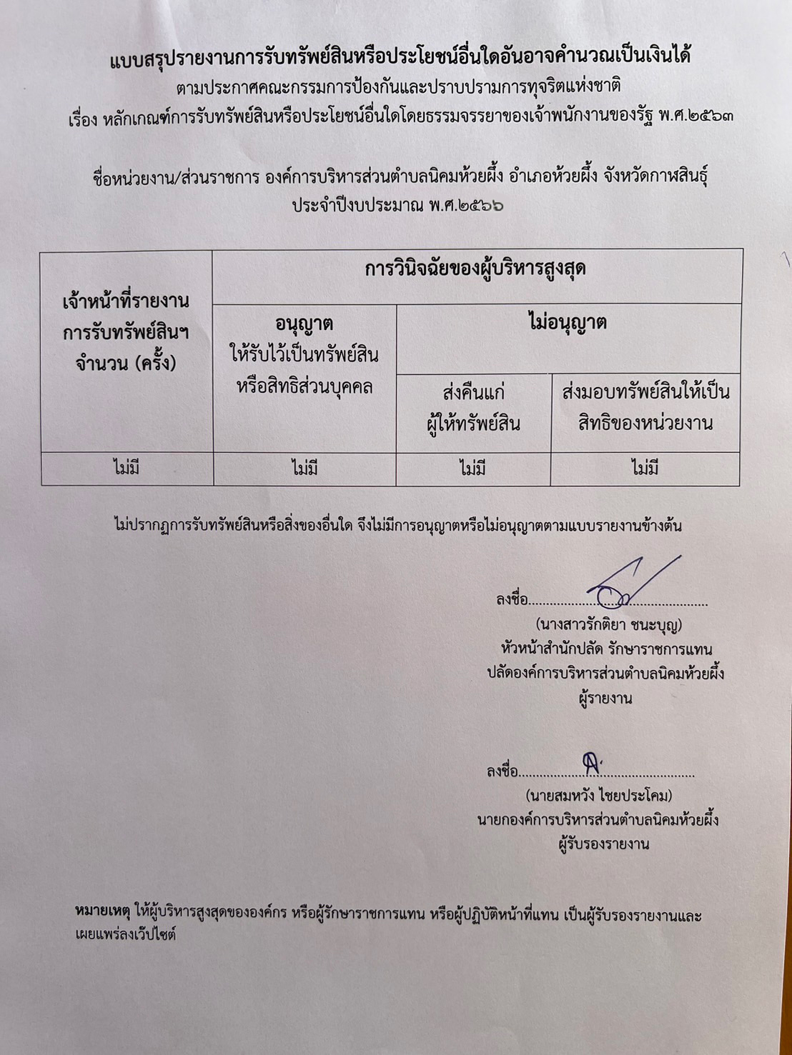 รายงานการรับทรัพย์สินหรือประโยชน์อื่นใดอันอาจคำนวนเป็นเงินได้