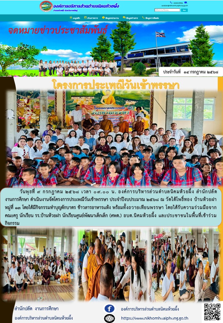โครงการประเพณีวันเข้าพรรษา ประจำปีงบประมาณ 2568 ณ วัดใต้โพธิ์ทอง บ้านห้วยฝา