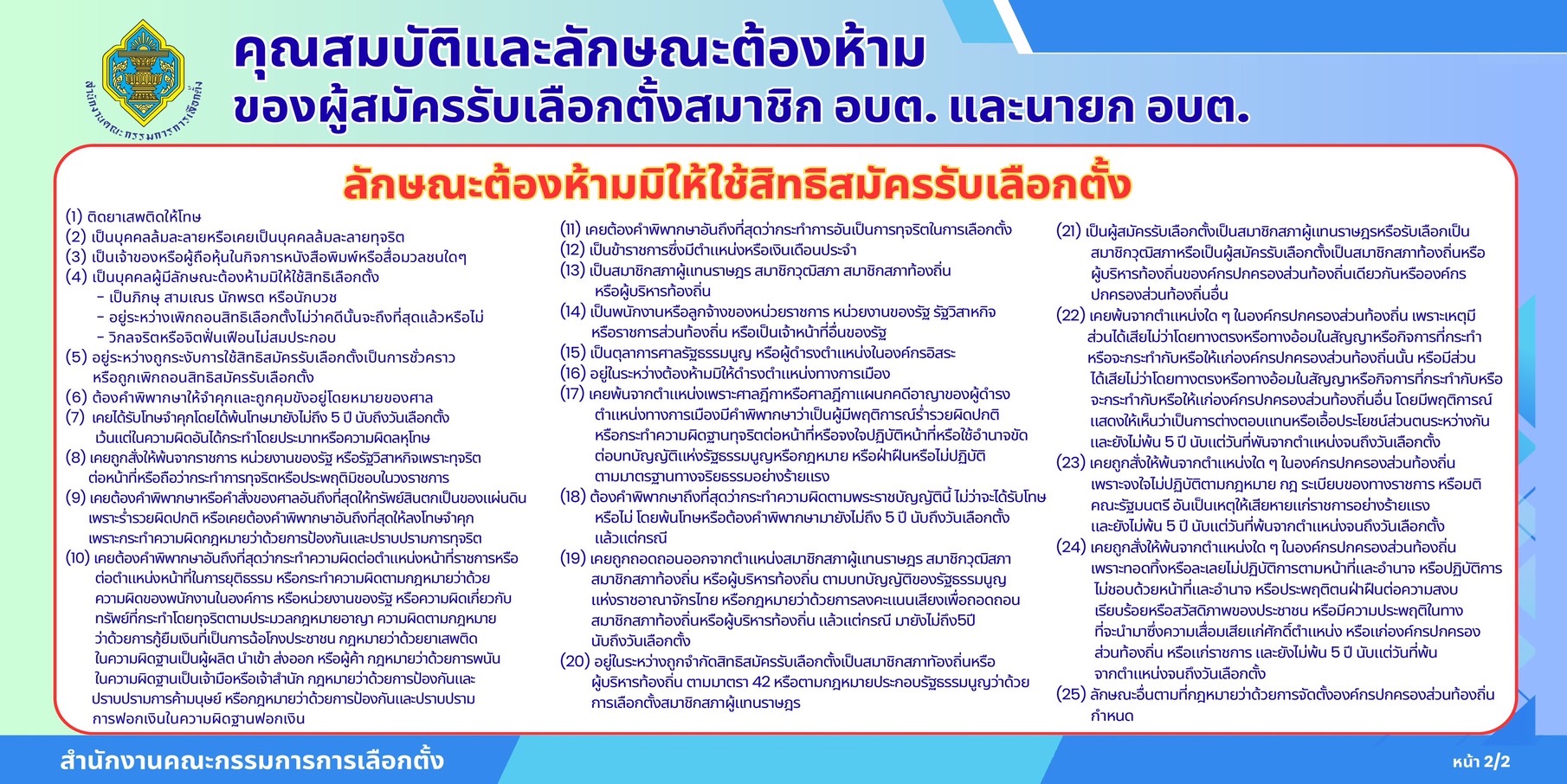 คุณสมบัติและลักษณะต้องห้ามของผู้สมัครรับเลือกตั้ง สมาชิก อบต. และนายก อบต.