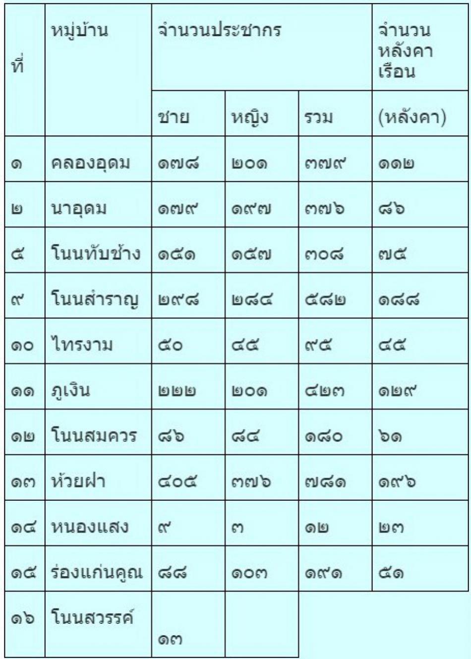 ข้อมูลเกี่ยวกับจำนวนประชากร
