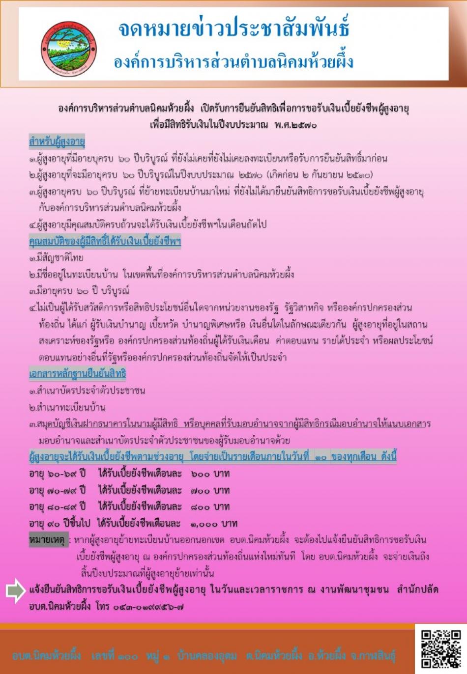 ประชาสัมพันธ์ ยืนยันสิทธิรับเบี้ยยังชีพผู้สูงอายุ ประจำปีงบประมาณ 2570 [9 ตุลาคม 2568]
