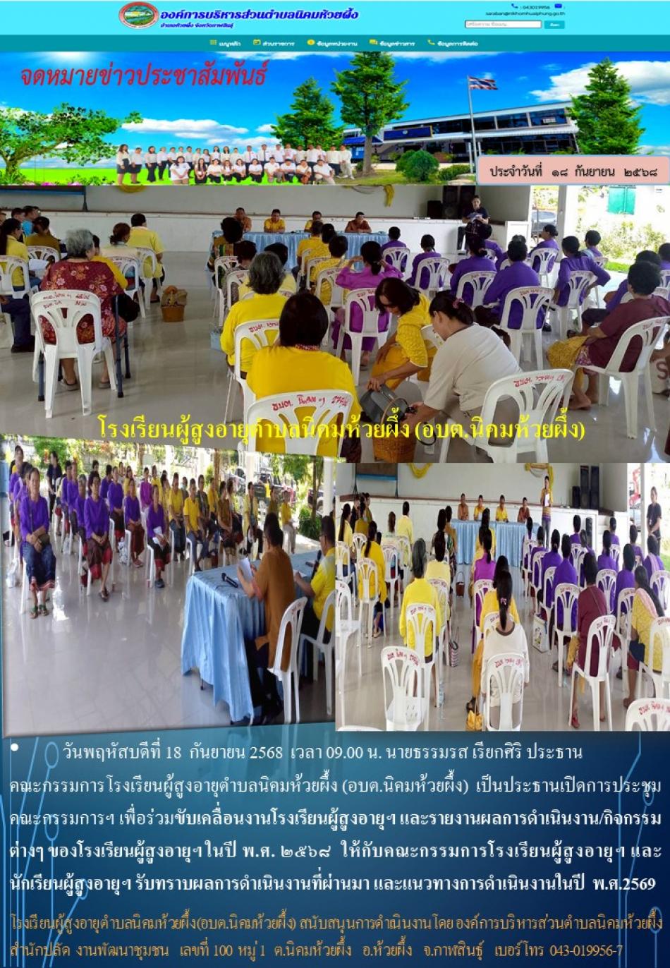 วันพฤหัสบดีที่ 18 กันยายน 2568 ประชุมคณะกรรมการฯ เพื่อร่วมขับเคลื่อนงานโรงเรียนผู้สูงอายุฯ และรายงานผลการดำเนินงาน/กิจกรรมต่างๆ ของโรงเรียนผู้สูงอายุฯ ในปี พ.ศ. ๒๕๖๘ [23 กันยายน 2568]