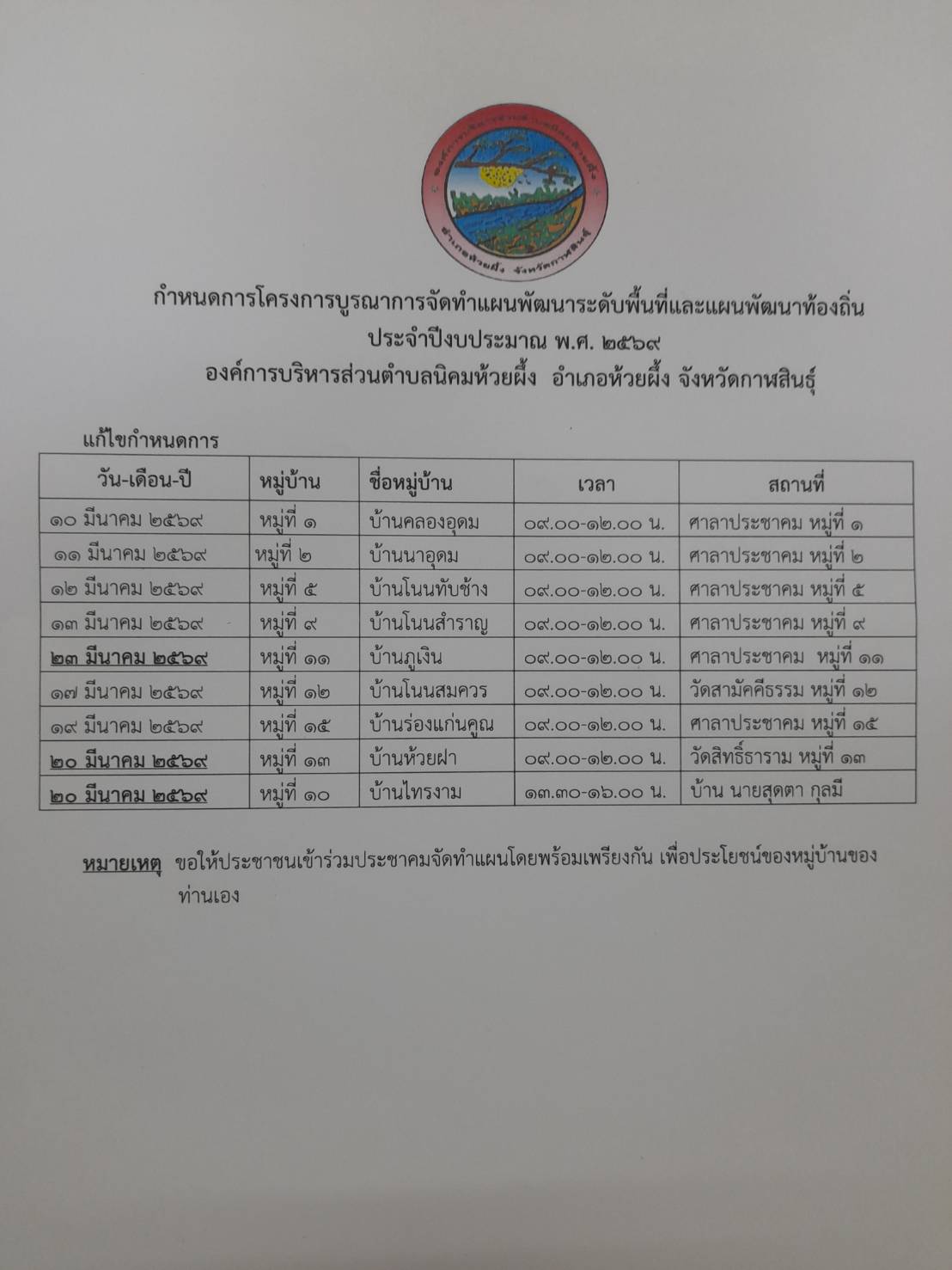 ประชาสัมพันธ์โครงการบูรณาการจัดทำแผนพัฒนาระดับพื้นที่และแผนพัฒนาท้องถิ่น ประจำปีงบประมาณ 2569